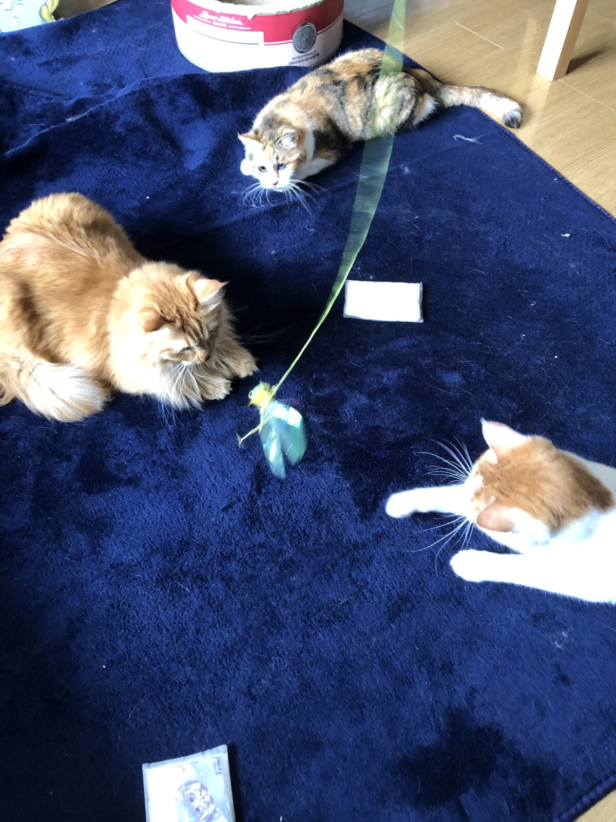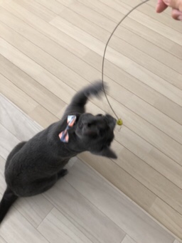 ご飯も食べたのでシッターと遊んでくれるかなー?とこまちゃん愛用のじゃらしを手にするとピョンピョンシュタタタ〜ッと華麗な身のこなしでリビングを走ります!まるで新体操選手の様な軽やかさです。