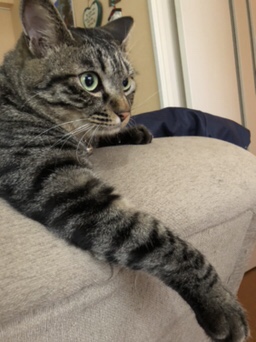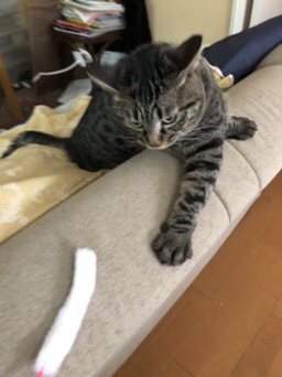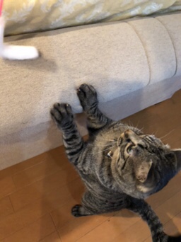 ソファの上をひらりひらりと器用に走り回り、ジャンプも軽やかで遊びが大好きな一面を見せてくれます。