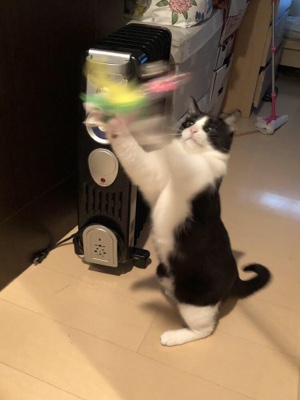 今日は持参した猫じゃらしでチャック君と少し遊びました。