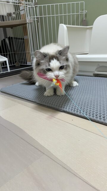 おもちゃを出すと、何それ‼️ すぐに飛びついてくれました😝