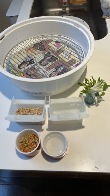 最近床をお散歩したり、シッターがお話をしたり、シッターが歌を歌うのを、ジーっと聞いて、ゲージに戻った時に一人でおしゃべりを楽しんでいます😝