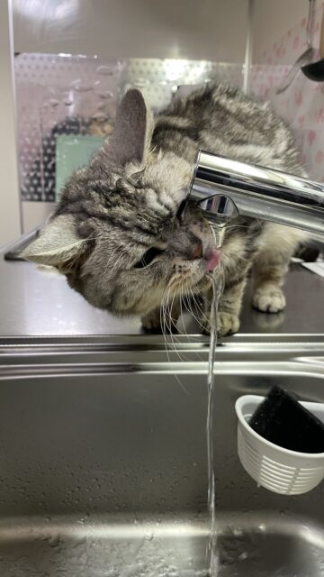ドナちゃんはジャラシで遊ぶよりも、🚰水道の蛇口から出るお水が大好き。