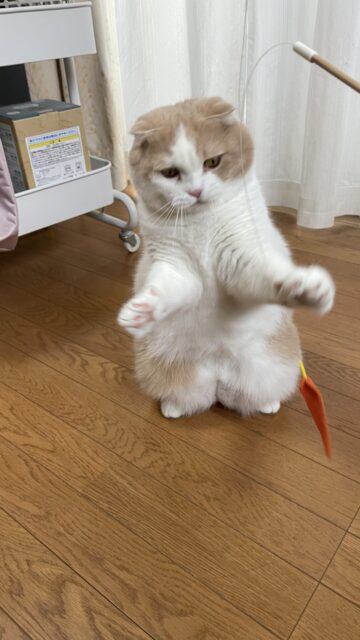 キャッチして2本脚で立っている姿が、とても可愛いかったです💕