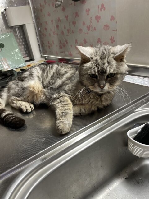 シンクの所にいるのが落ち着くみたいで、ゴロリしていました☺️