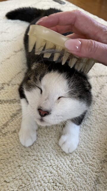 ブラッシングが大好きなので、時間いっぱいで、撫で撫でしながらブラッシングをしました。