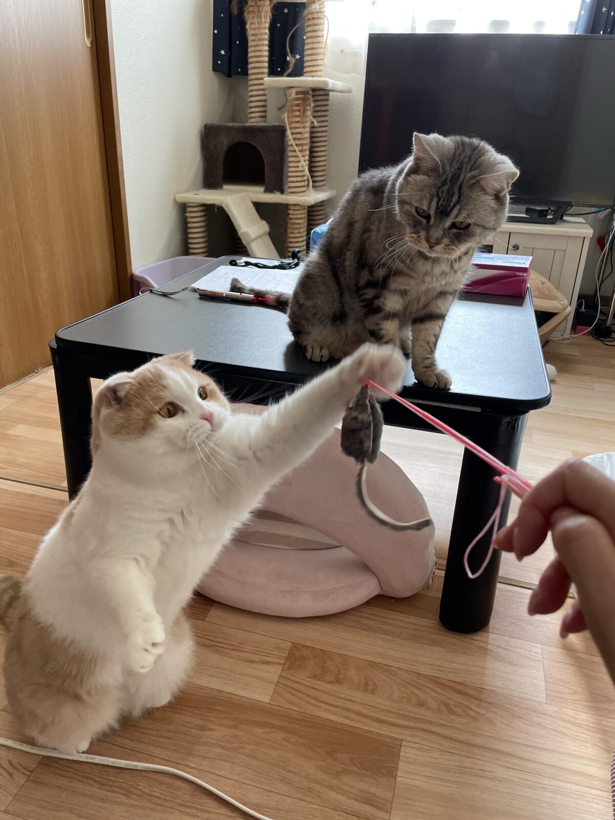 ドナ君は自分が遊んでいても、オズ君に譲って、見守るようにじーっと👀見ています😊