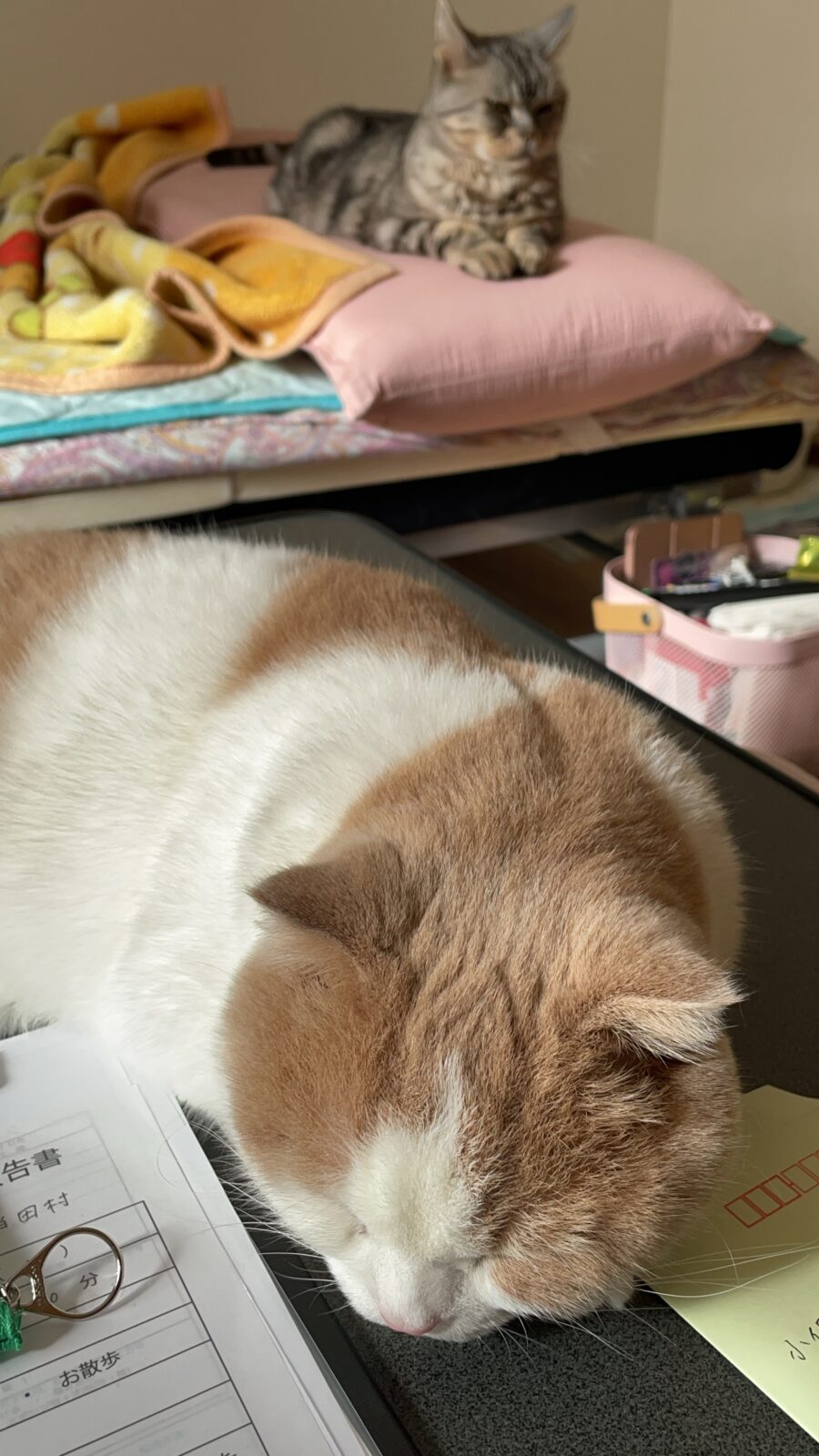 帰り際、報告書を書いていると、オズ君は甘えん坊💕モードで、書類の上にゴロン💦