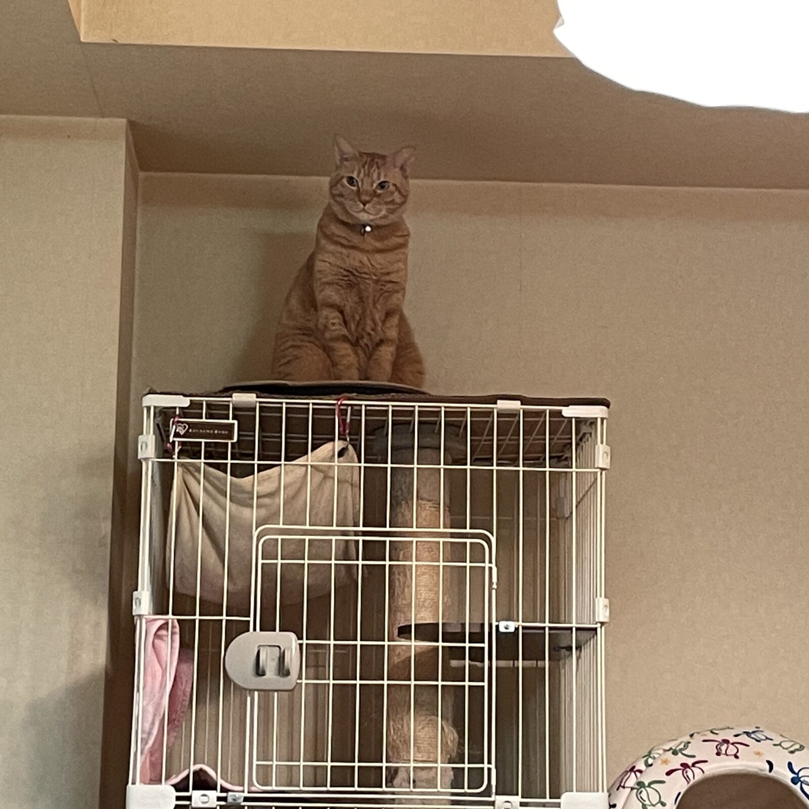 ココちゃんとは遊べませんでしたが、作業や、なっちゃんと遊んでる様子をゲージの一番上で