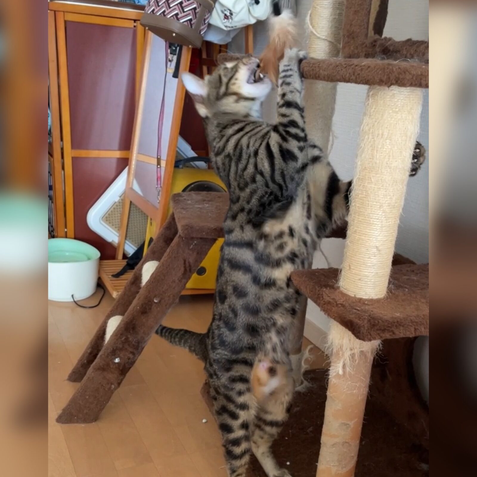 モカちゃん、ベガちゃんは猫じゃらしとポインターで👍