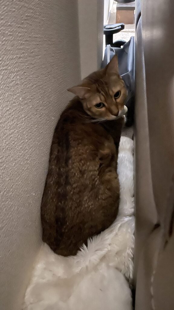 お久しぶりだったせいか、ななちゃんが警戒Maxで、1日めはソファーの後に隠れていました🥲