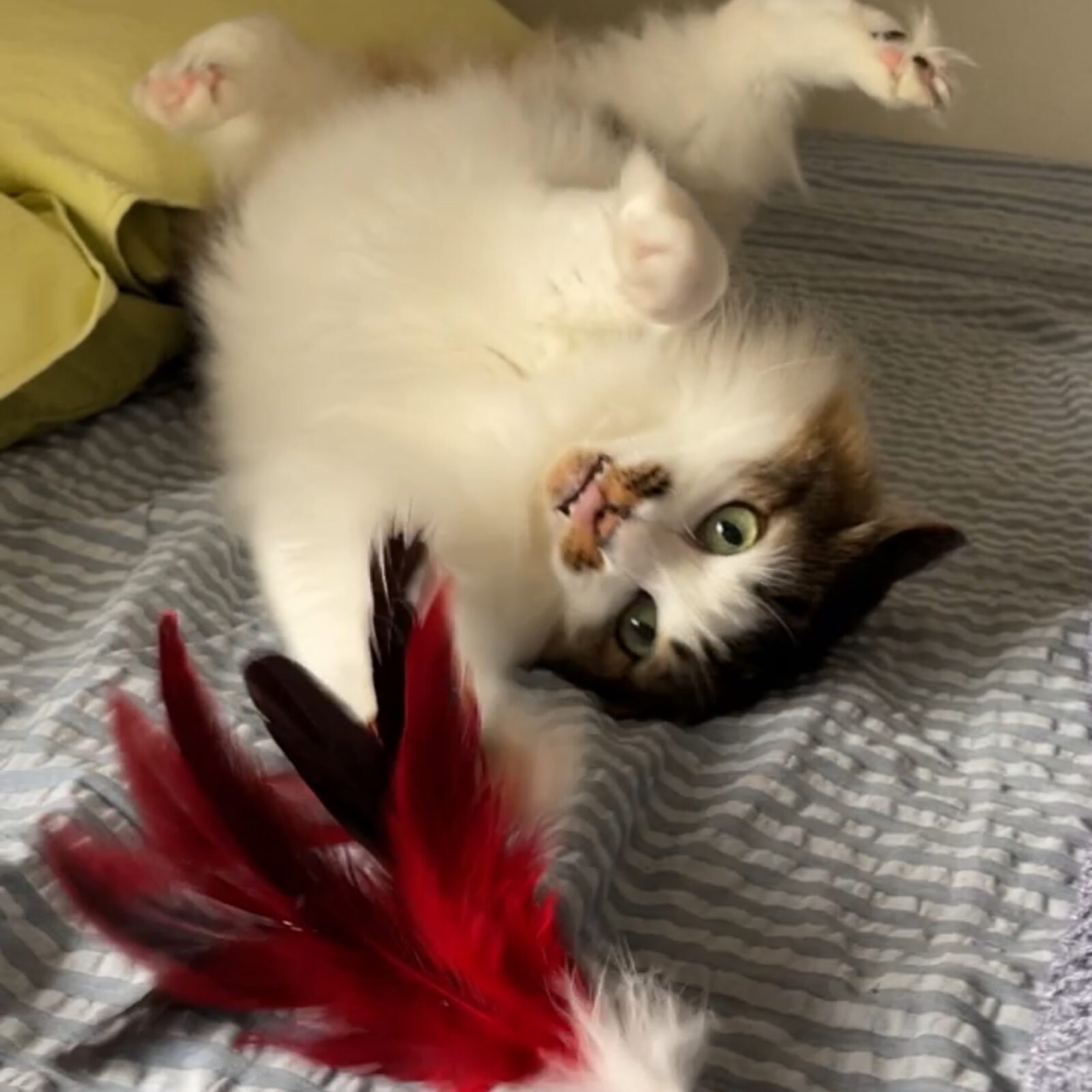かまぼこ君は、最初から懐っこくて🥰甘えてくれたり、猫じゃらしなどで、