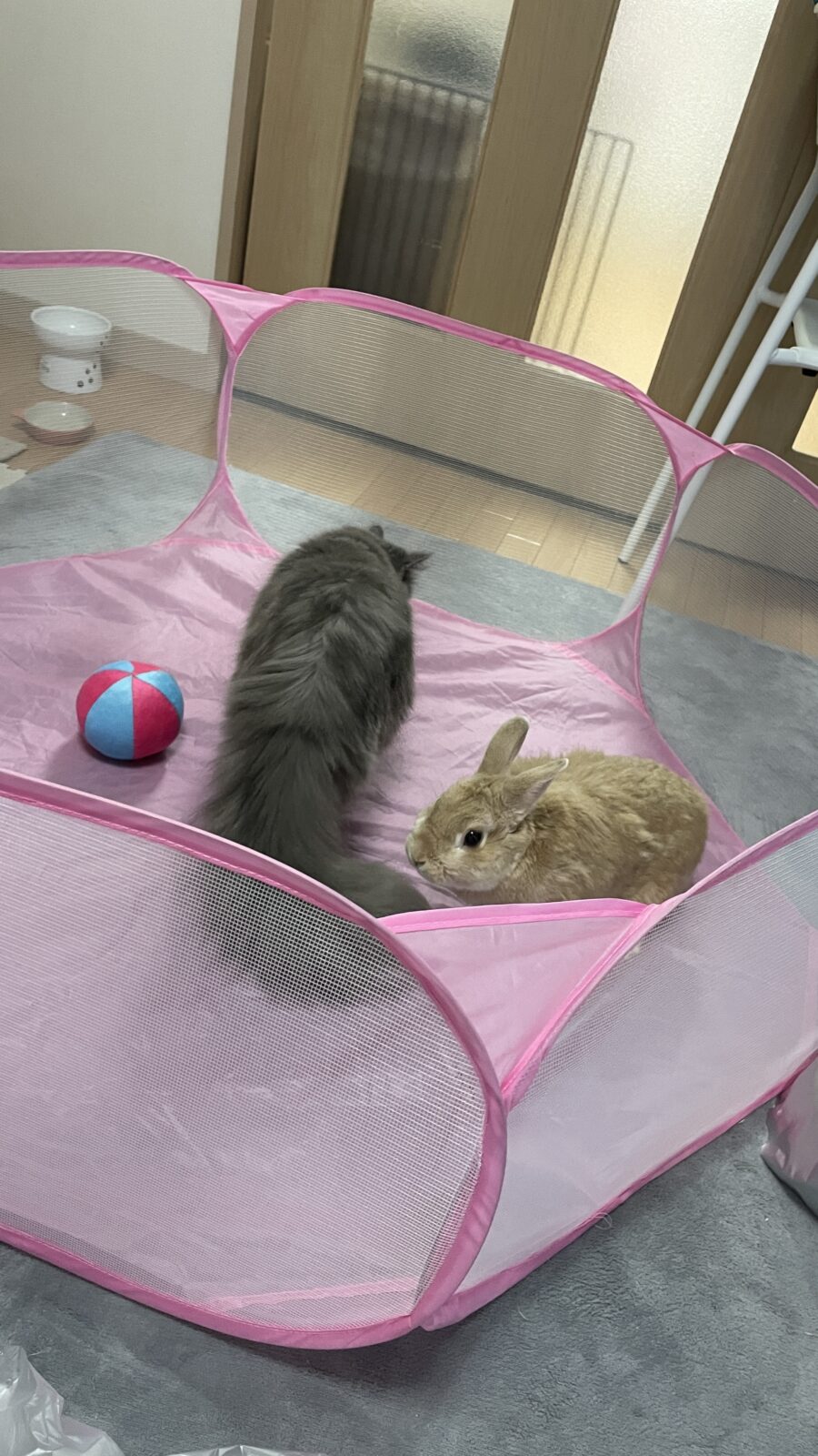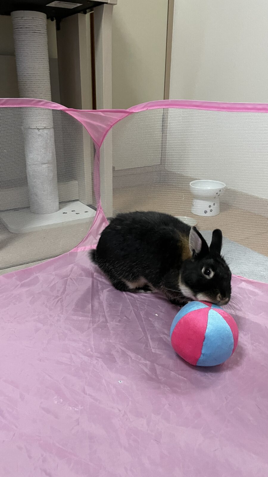 お留守番中は、ゲージの中で、過ごしていたので、サークルに放してあげると、ぴょんぴょんと走っていました。🐇💨💨💨