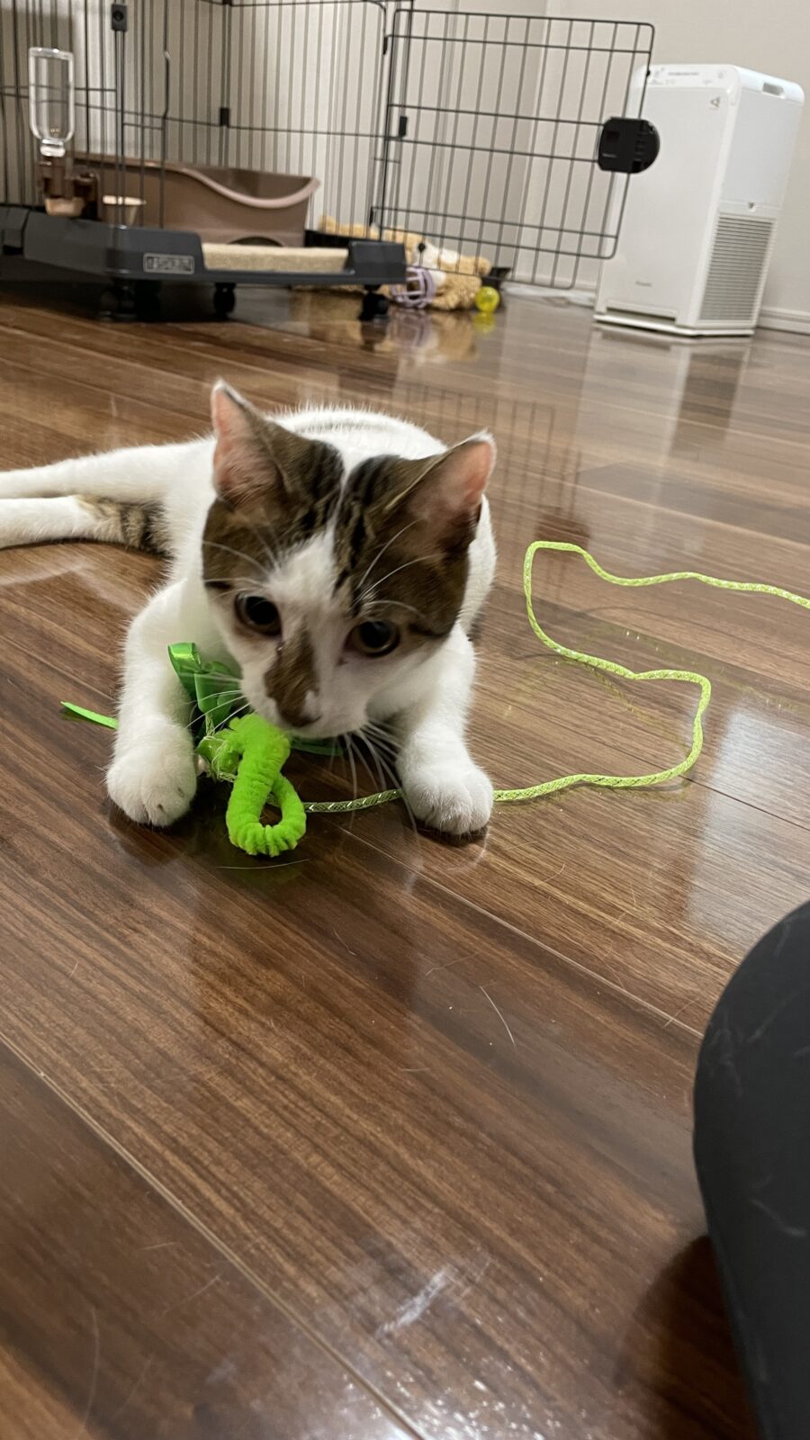 おもちゃの中でも、緑のニョロニョロが、かなりお気に入り✨