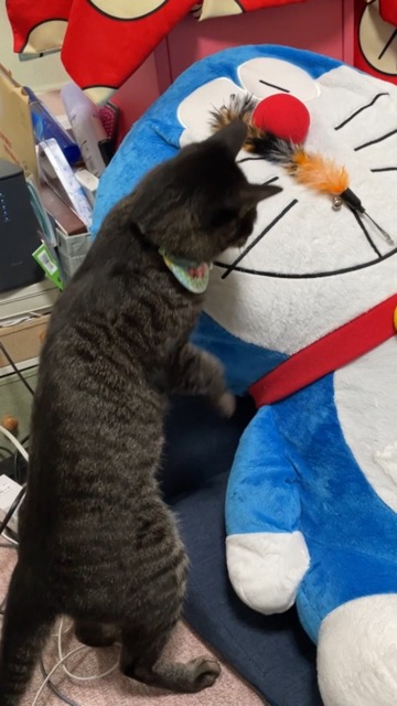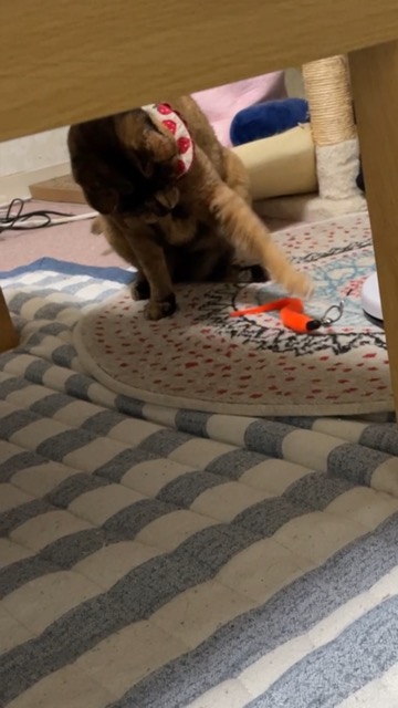 どんちゃんは、尻尾のジャラシがお気に入り。楽しそうに追っかけていました😊