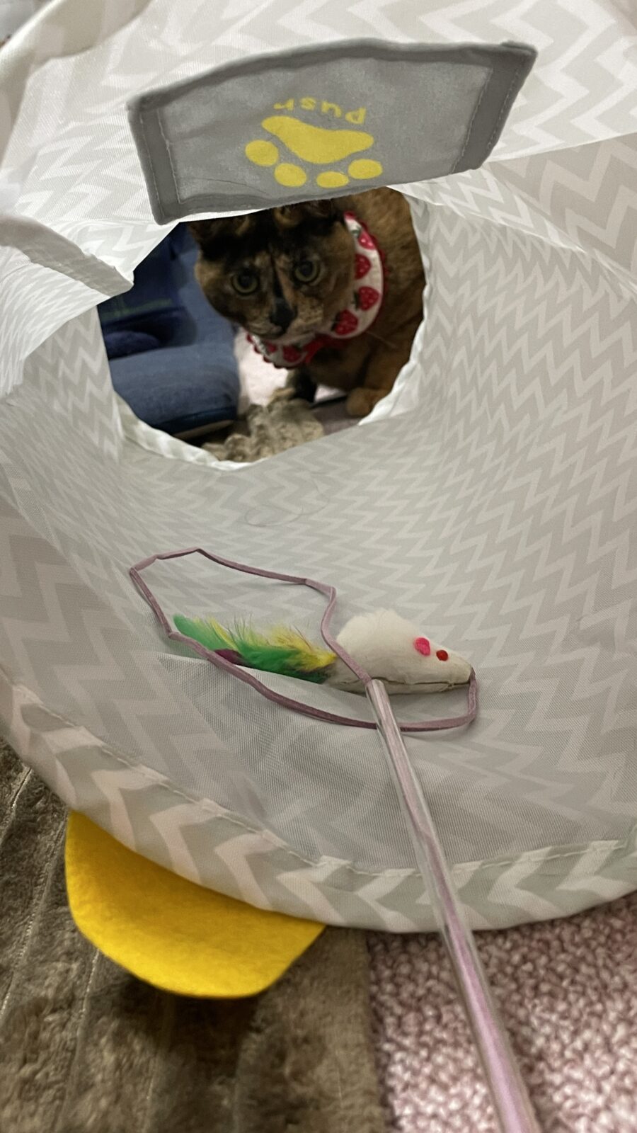 のこりちゃんは、よろコブラが大好きで💞、本物の獲物と戦ってるかのように遊んでいます。