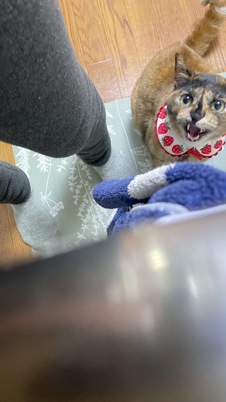 チュールの時は、シャーをしながらも、足にすりすり💞「はよしてや〜」