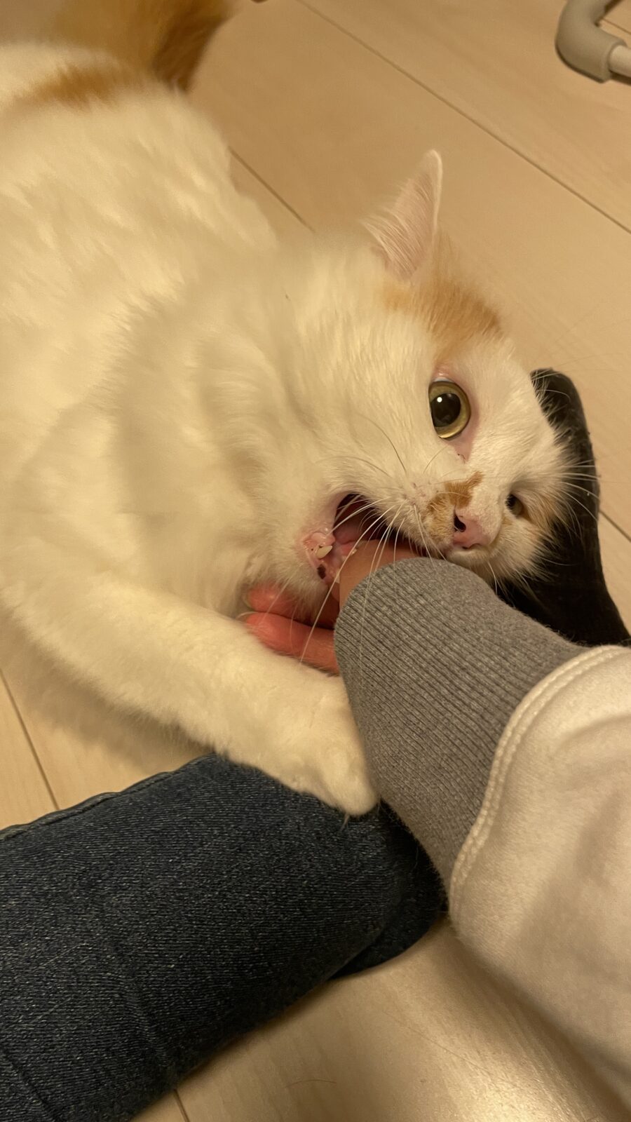 帰る前に、撫で撫でタイムをしました。お尻が気持ち良くて、ガブっ⚡️ 笑😁