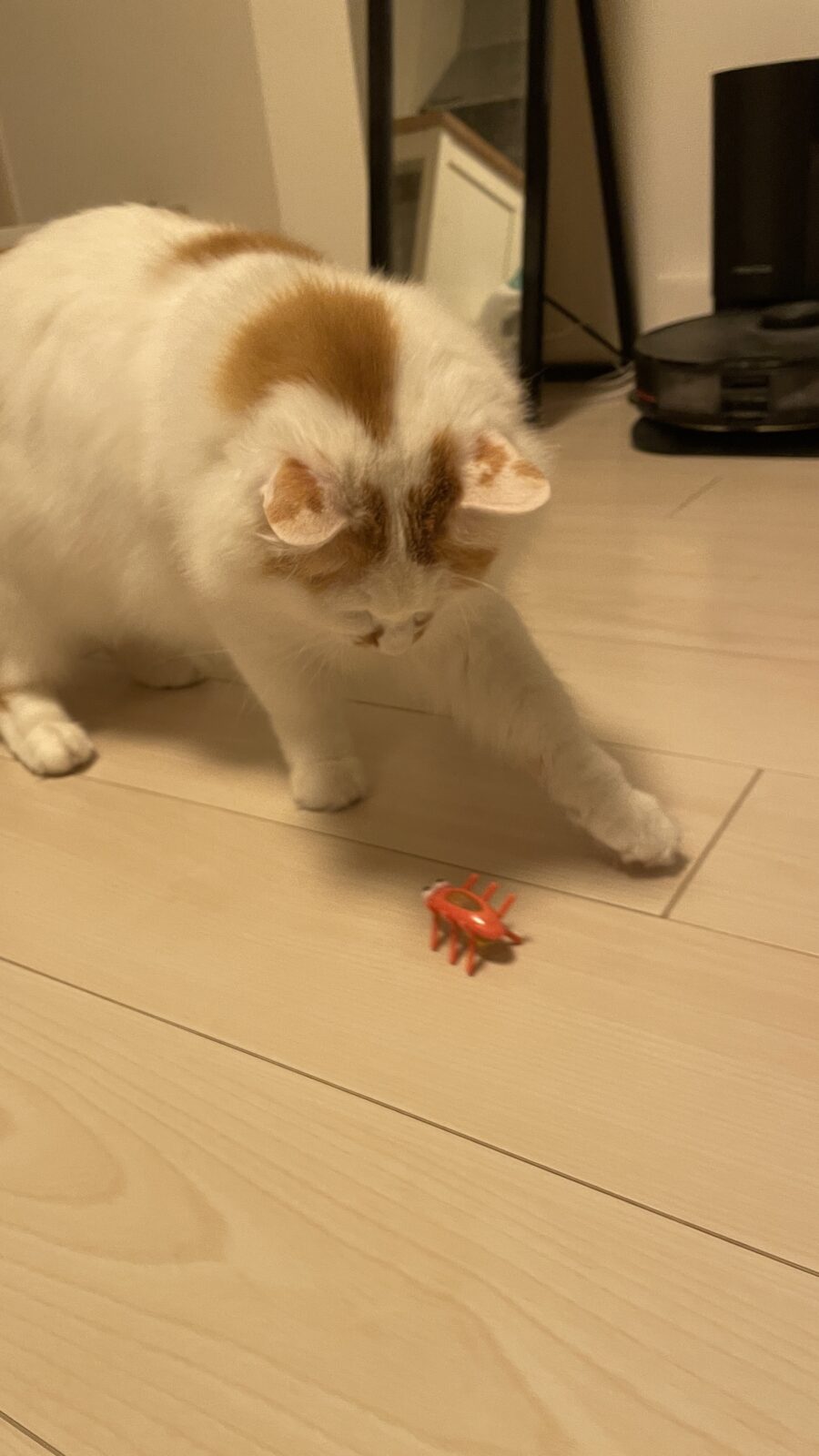お部屋に入って行くと、ゴロンとお腹を見せてからお迎えに来てくれました。