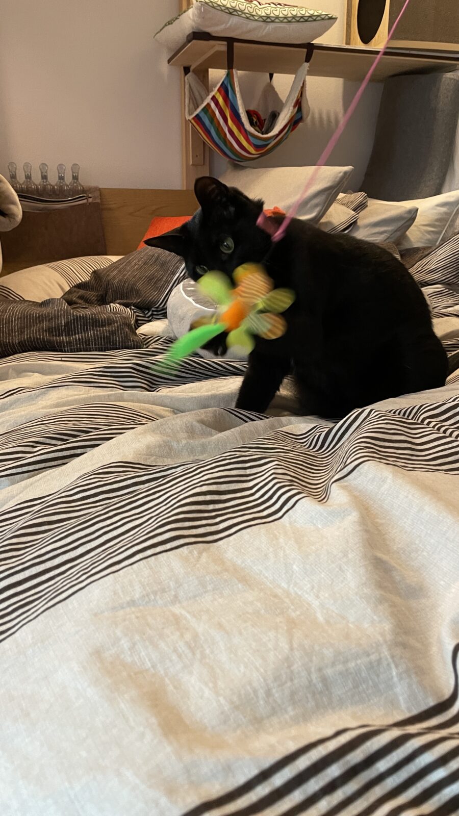 じゃらしで遊んでから、大好きなポインタータイム😝