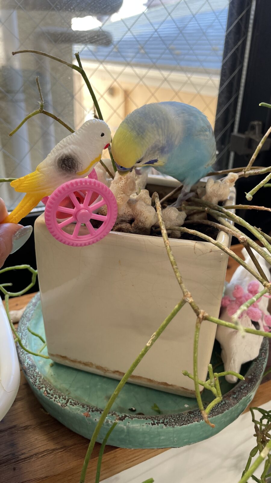放鳥タイム❤️ 最近のお気に入りは植木の珊瑚を、カジカジ噛むこと✨