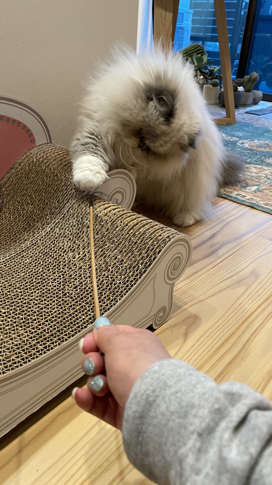 羽ジャラシを左右に振っていると、体勢を低くしながら、だんだん近くに。