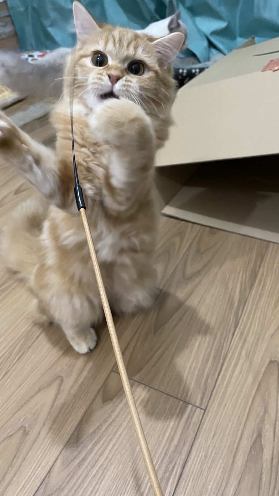 メビちゃんが積極的の為、ジャラシをとられてしまうので、ご飯を食べてる時に遊びました👍