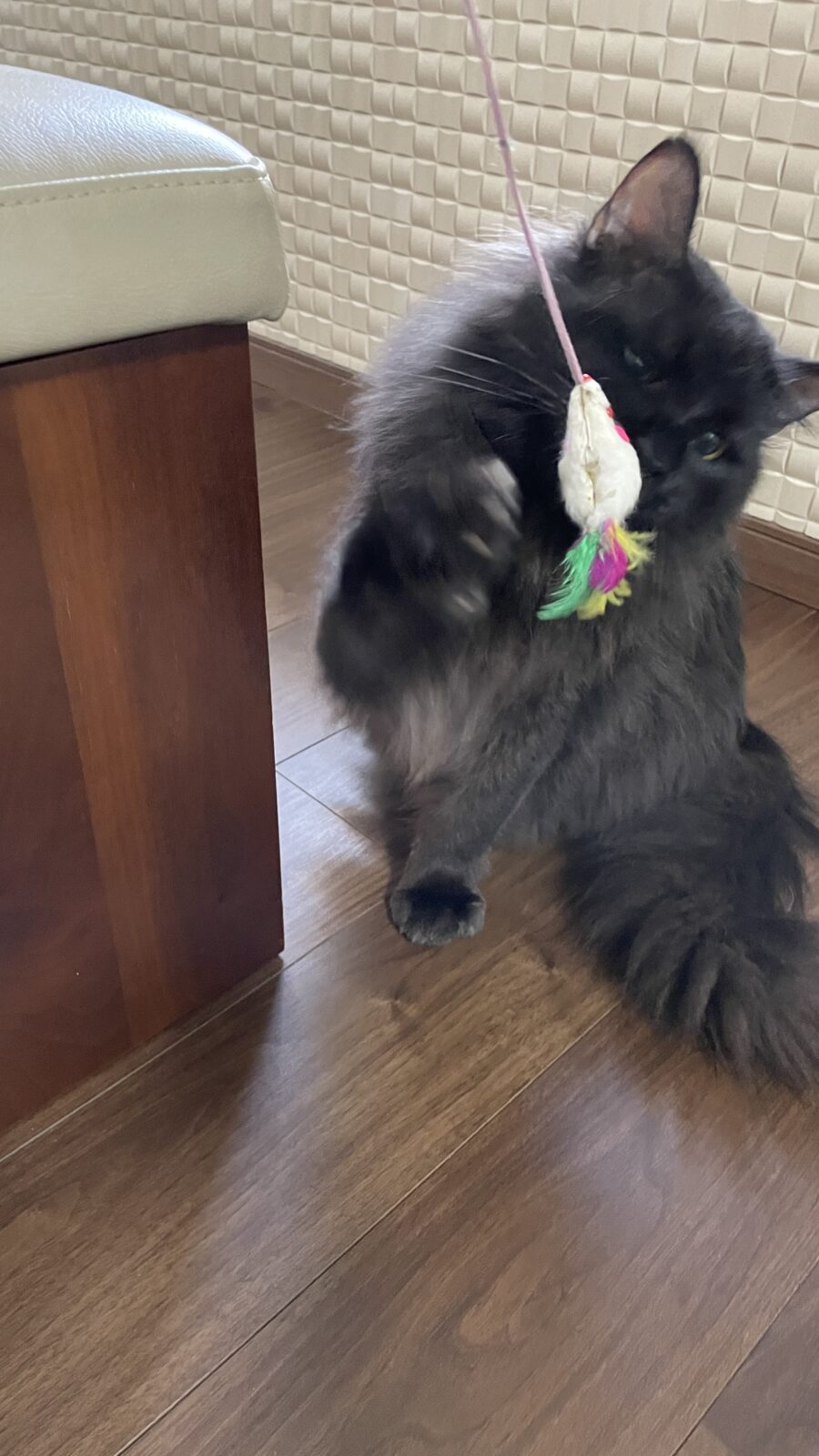ジャラシで遊びました。ジャラシを左右に振ると、狙いを定めて、ダッシュ💨💨💨