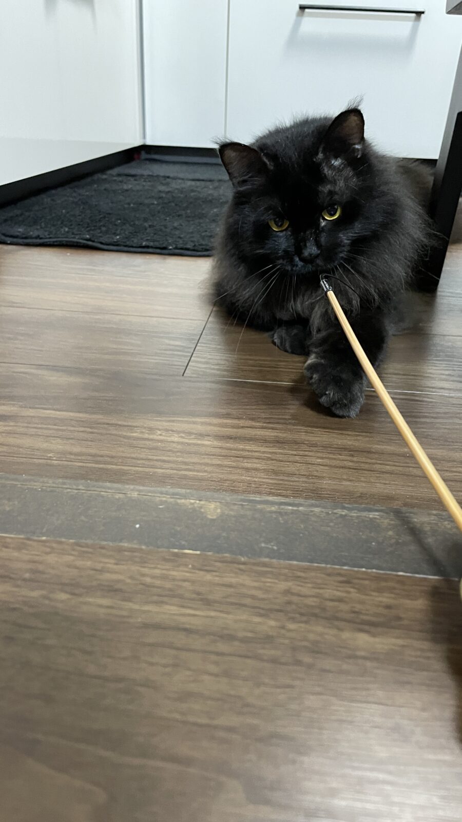 ジャラシを出すと、恒例の爪研ぎで気合いを入れてスタンバイ👍