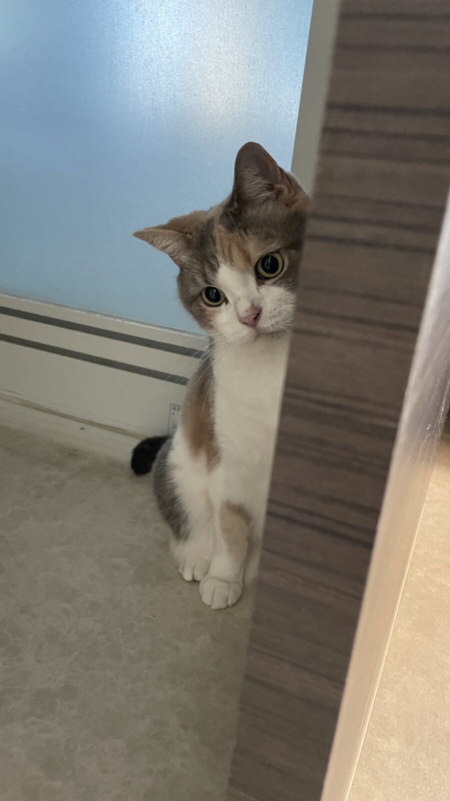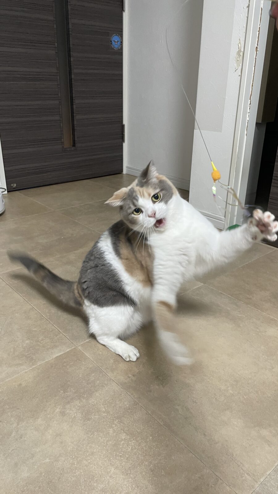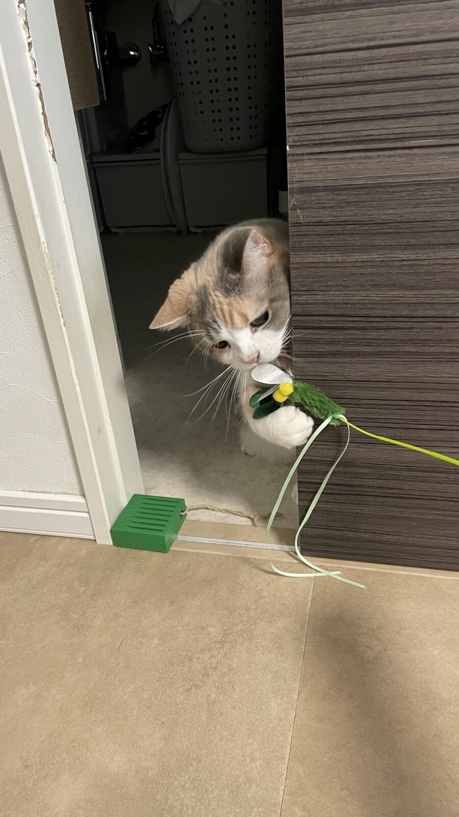 ジャラシを出すとドアの後に隠れてチラっと顔を出します😆