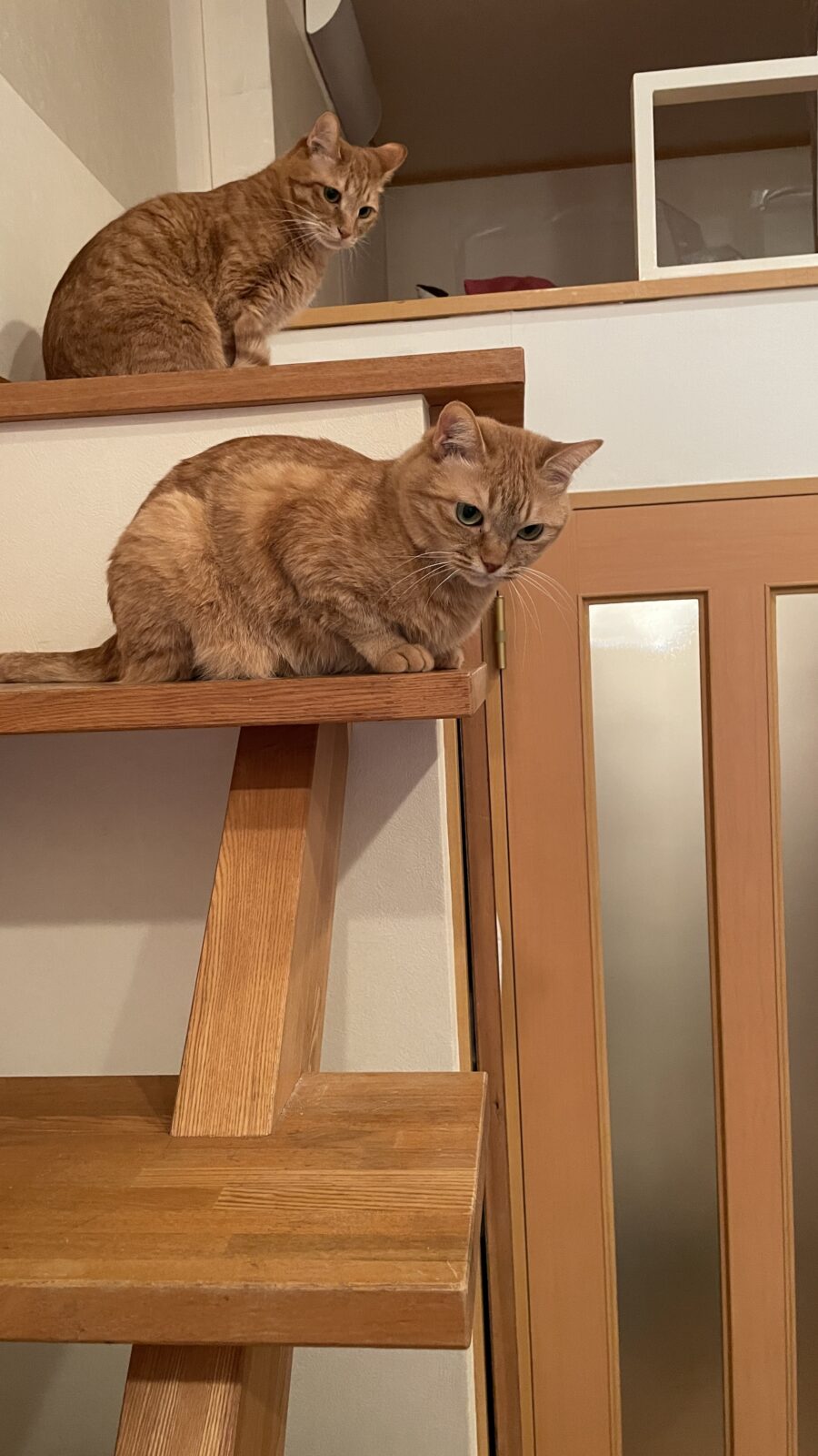 いつもふくまる君は、くっついて横にいるのにいない。うなぎちゃんは階段から見守ってくれてます。