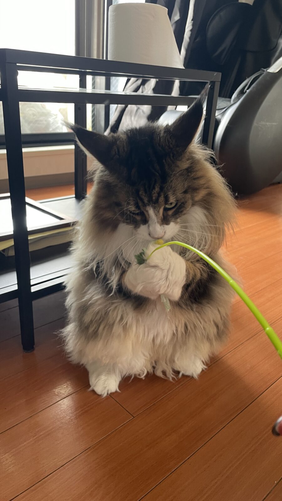 次女のきなこちゃん。マイペースで遊んでいると、三男のオレオ君が、すぐに奪い取ってしまい、