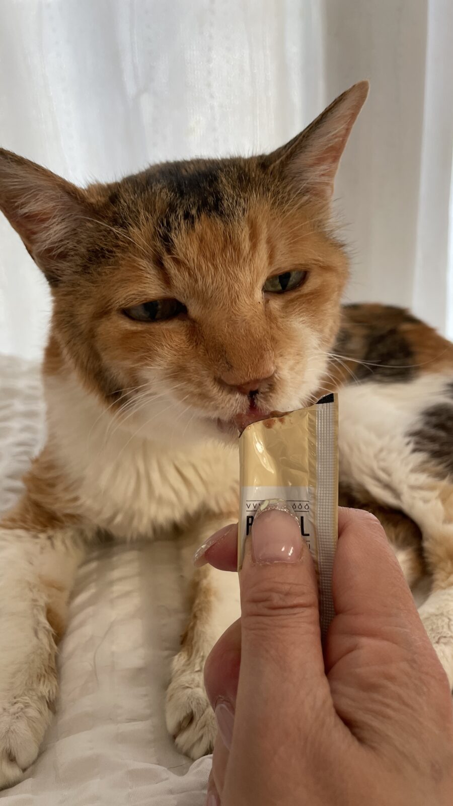 チュールをあげてみると、警戒心マックスでしたが、手から食べてくれました☺️