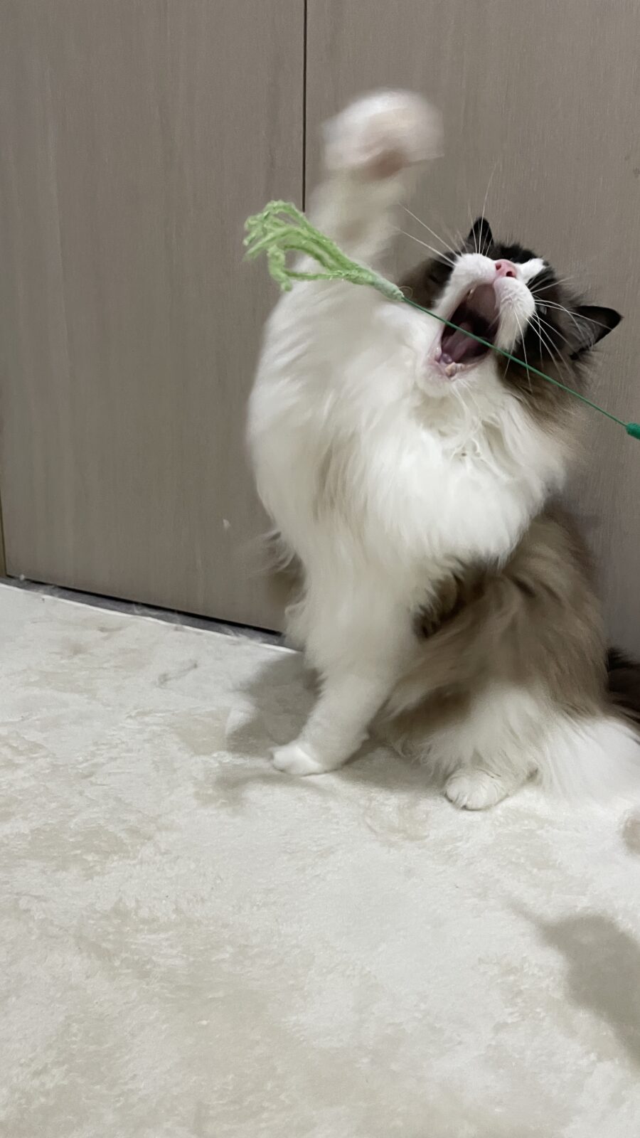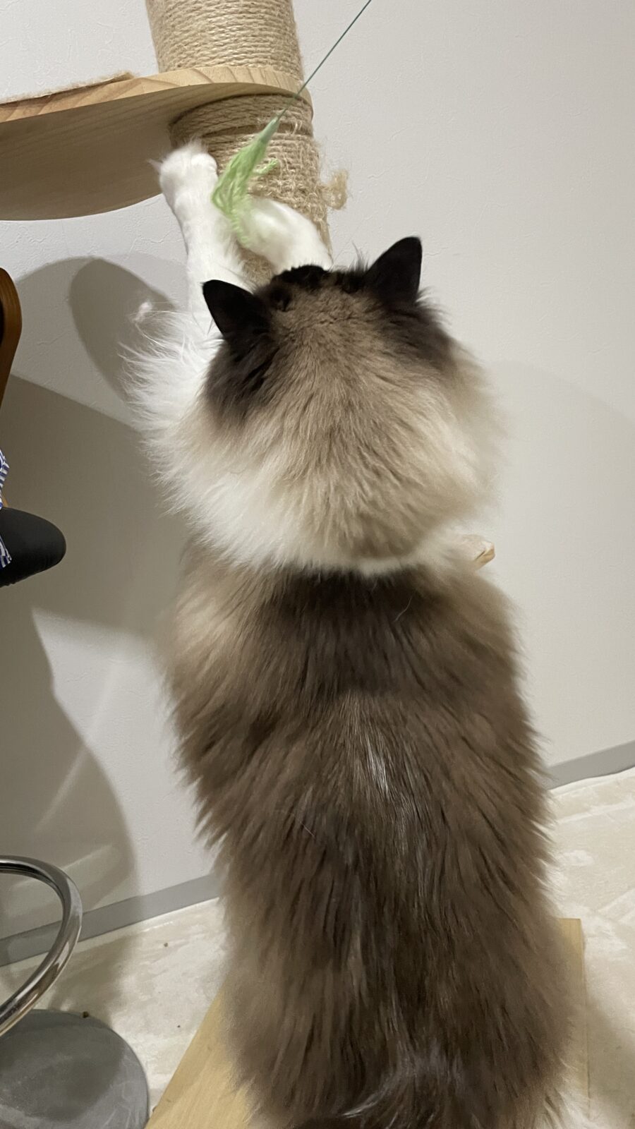 飼い主様から、オスカー君はあまり遊ばないと聞いていましたが、ジャラシを出すと…
