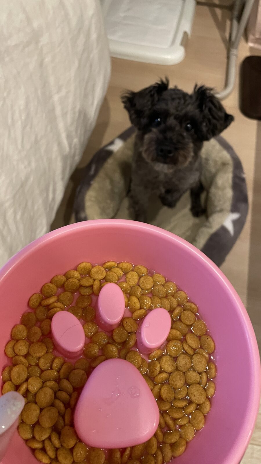 食事の用意をしていると、お座りをして「早く早く‼️」