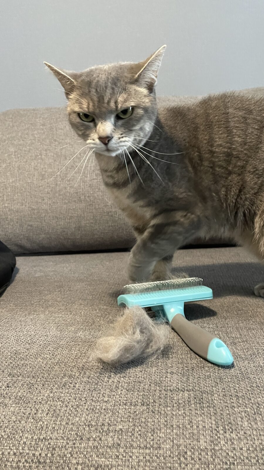 最初に、大好きなブラッシングや撫で撫でタイムをしないと、キャットタワーの寝床から出て来てくれなくなってしまうので、ご機嫌が良くなるまで、時間多めにします👍