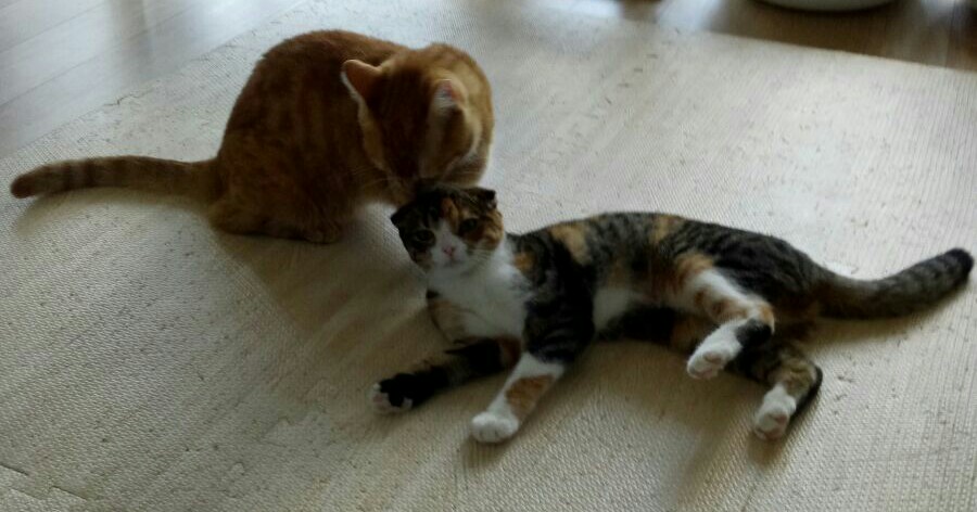 ボンちゃんは子猫の時からのお付き合いです。ニケちゃんの毛づくろいをしてあげたり、