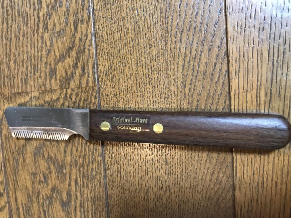 帰ってから早速、ネットでその方が使っていたのと似ているナイフを購入してみました。