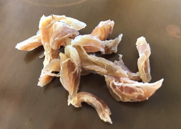 それまでおやつにあげていたジャーキーも高カロリーとのことなのでゆでたささみを干して