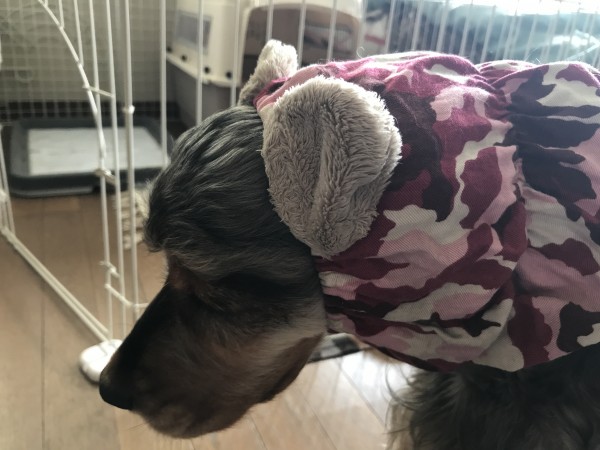 うちでは雨の日のレインコート以外、あまり洋服を着せないので