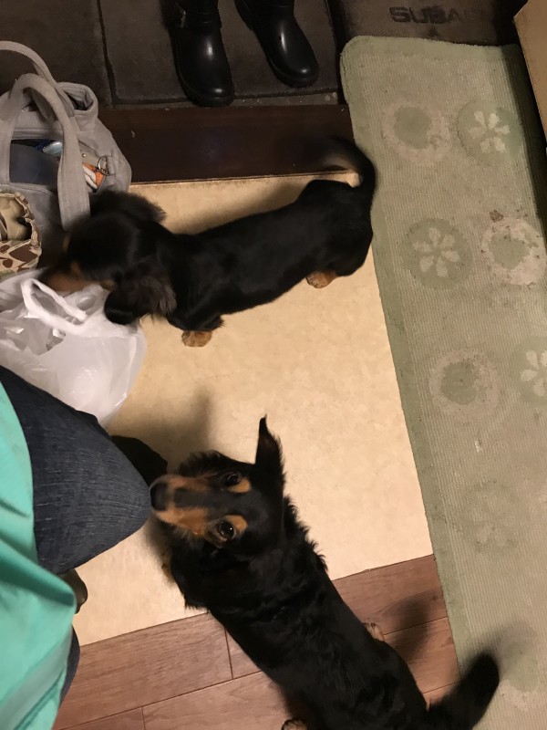 ミニチュアダックスフンドのダイ君リン君 雨のお散歩♬ 横浜のペットシッター 港北区、神奈川区、鶴見区、保土ヶ谷区・・・