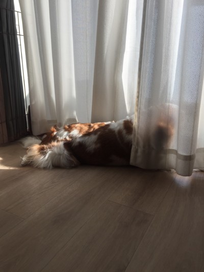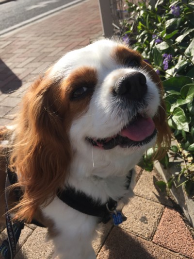気候が良くなってお散歩を楽しんでいる カズ君🐾🐾 少し暑くなってきてハアハアしてますね😂
