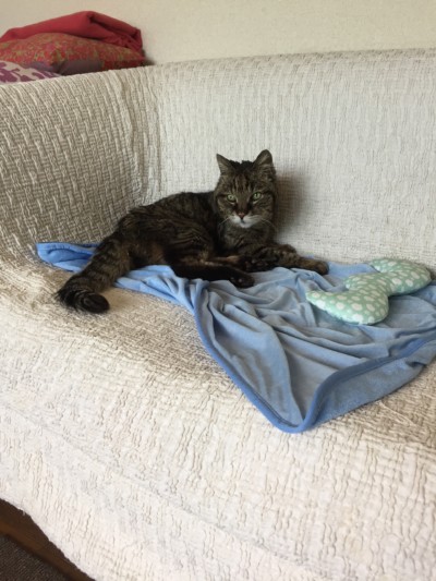 お気に入りの場所でくつろいでいる ぷうちゃん🐈