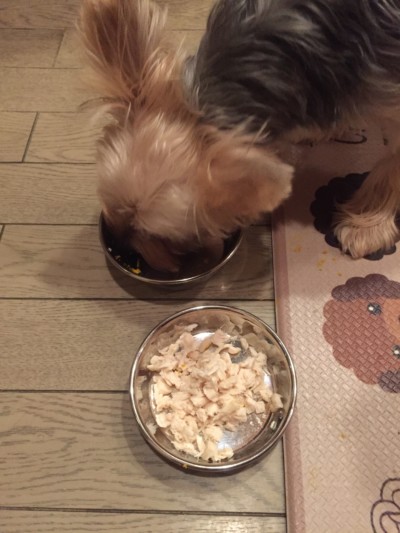 朝はあまり食べてなかったので 夕方はササミとカボチャ🎃を用意 ペロリとキレイに完食してくれました! お水もたくさん飲んでいます。