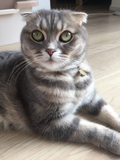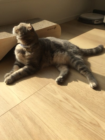 可愛いゴロンスタイルで お出迎えのミカンちゃん🐈