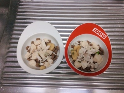 早速、我が家の愛犬達にいつものカリカリフードに