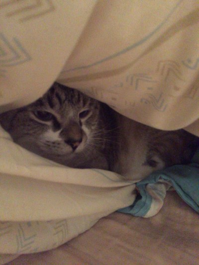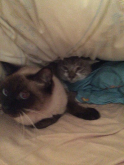 怖がりの2匹… 仲良くお布団の中で寝ていました🤣 お顔を見れたので良かった!