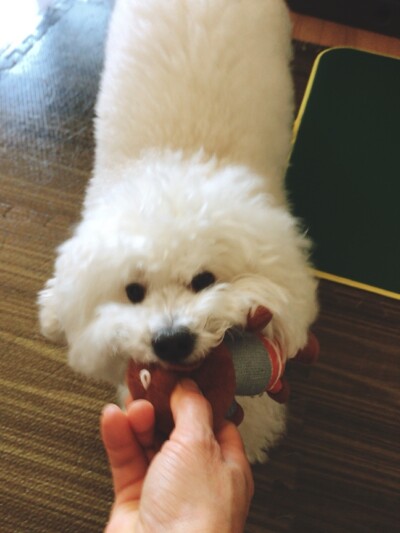 お散歩後は遊んで~と