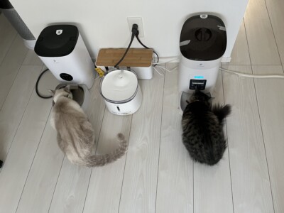 美味しそうに食べている2匹🐈🐈⬛