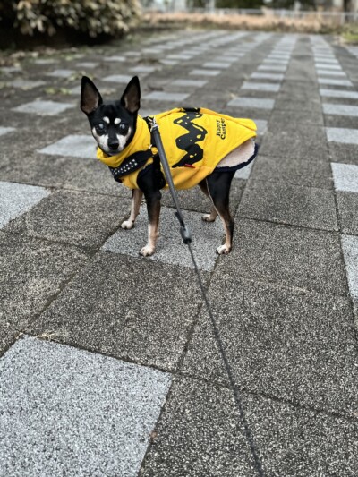 暖かいお洋服を着せてご機嫌です