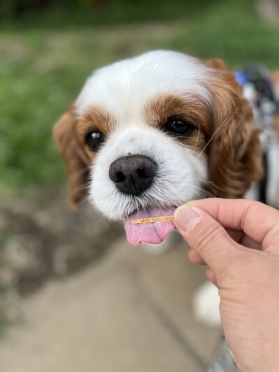 お散歩の時だけはおやつはお許しを もらっているので食べたくて食べたくて…😅